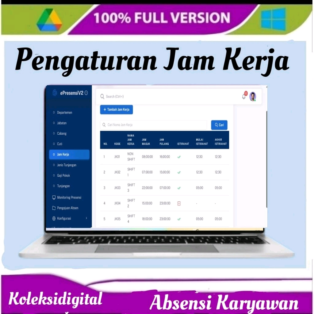 aplikasi presensi modern yang dibangun menggunakan framework Laravel, dilengkapi dengan: